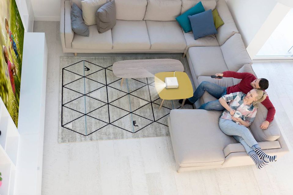 Người dùng có thể dễ dàng tạo ra màn hình 150 inch ấn tượng bất cứ nơi nào bạn muốn với máy chiếu laser Epson EF-100B nhỏ gọn và nhẹ này, giúp bạn dễ dàng di chuyển từ phòng này sang phòng khác hoặc ra khỏi nhà. Không dừng lại ở đó, nó có thể trình chiếu linh hoạt theo bất kỳ hướng nào - trên tường, trần hoặc sàn giúp bạn linh hoạt hơn trong việc bố trí lắp đặt máy chiếu.
